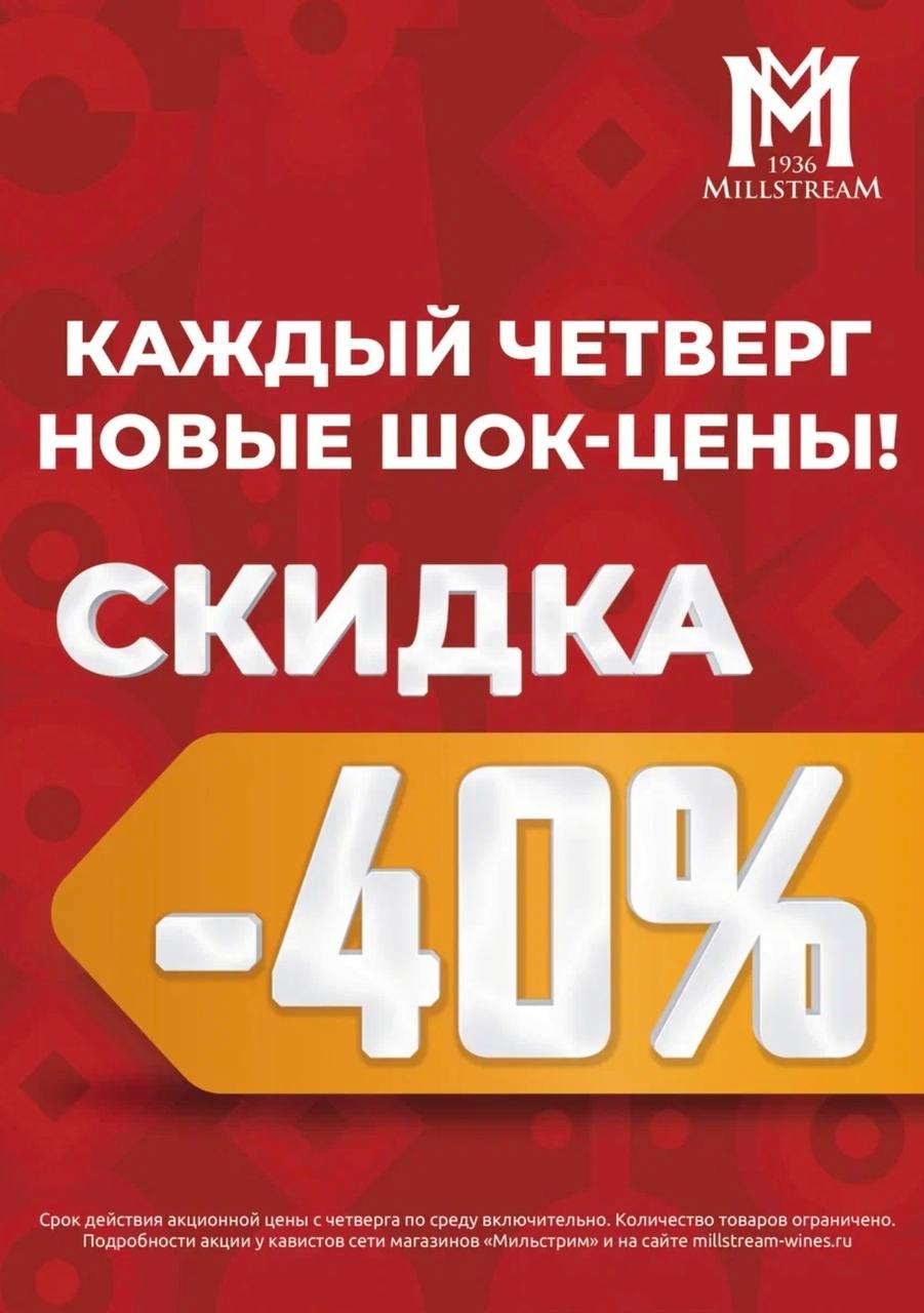 Каждый четверг новый ассортимент товаров со скидкой -40% сроком действия на 7 дней (с четверга по среду включительно).